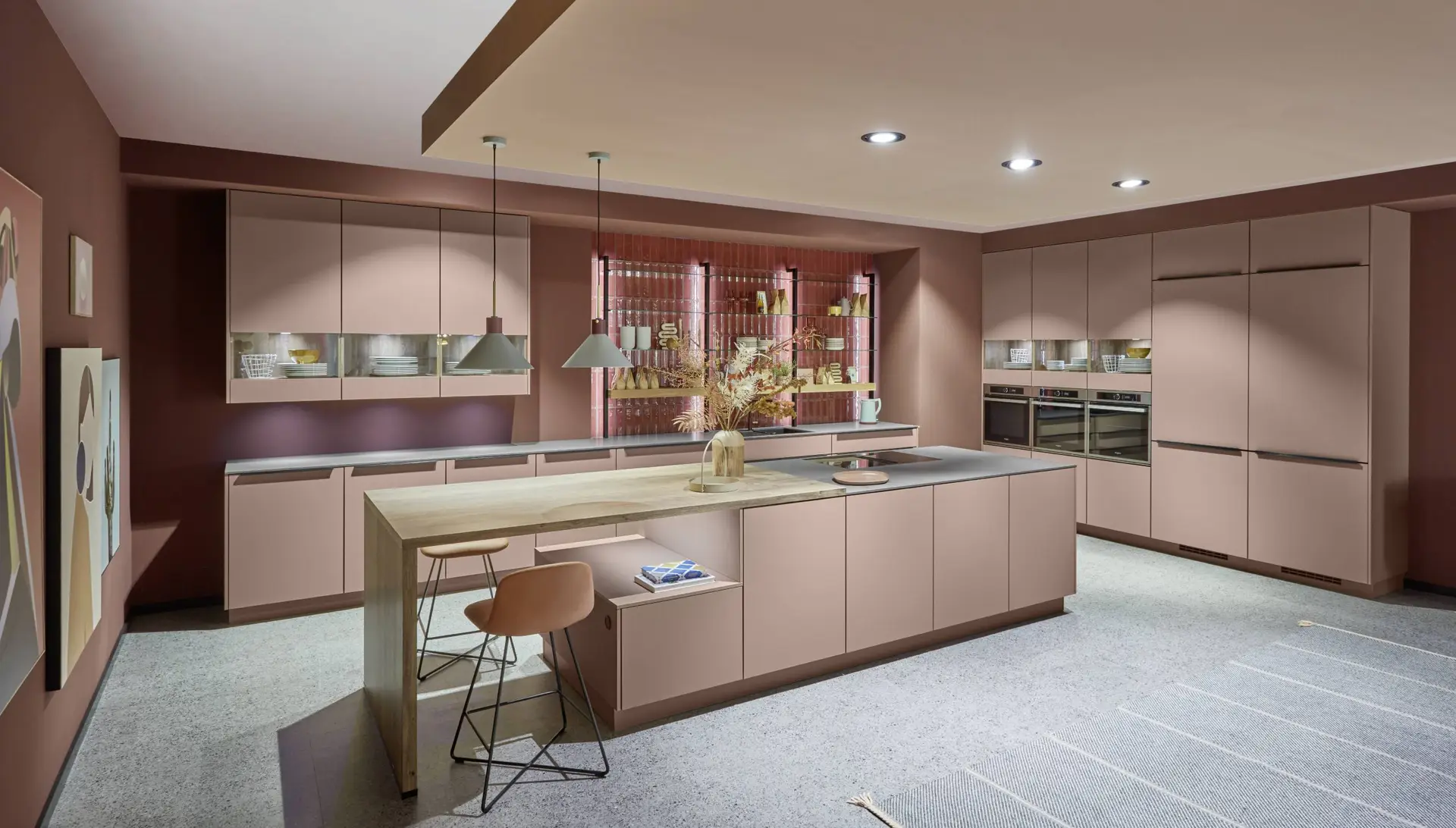 Für Fronten und Böden, aber auch als Akzentdetail wird Glas in verschiedensten Farben und Stärken in modernen Küchen verwendet. Beton wird in unterschiedlichen Farbausführungen und Stärken im modernen Küchendesign eingesetzt.